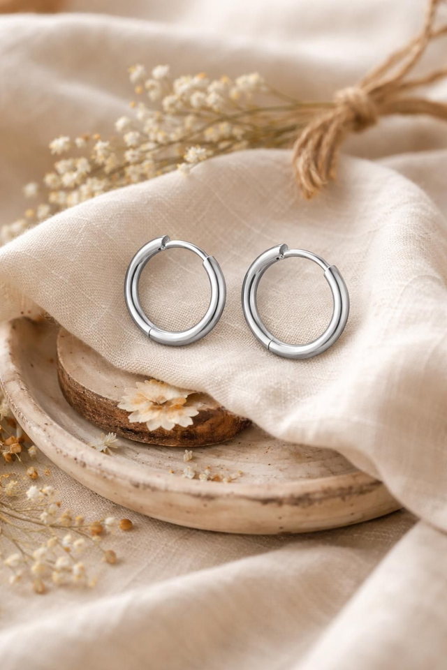 Paire de boucle d'oreille anneau créoles en acier inoxydable, vendu en boite cadeau